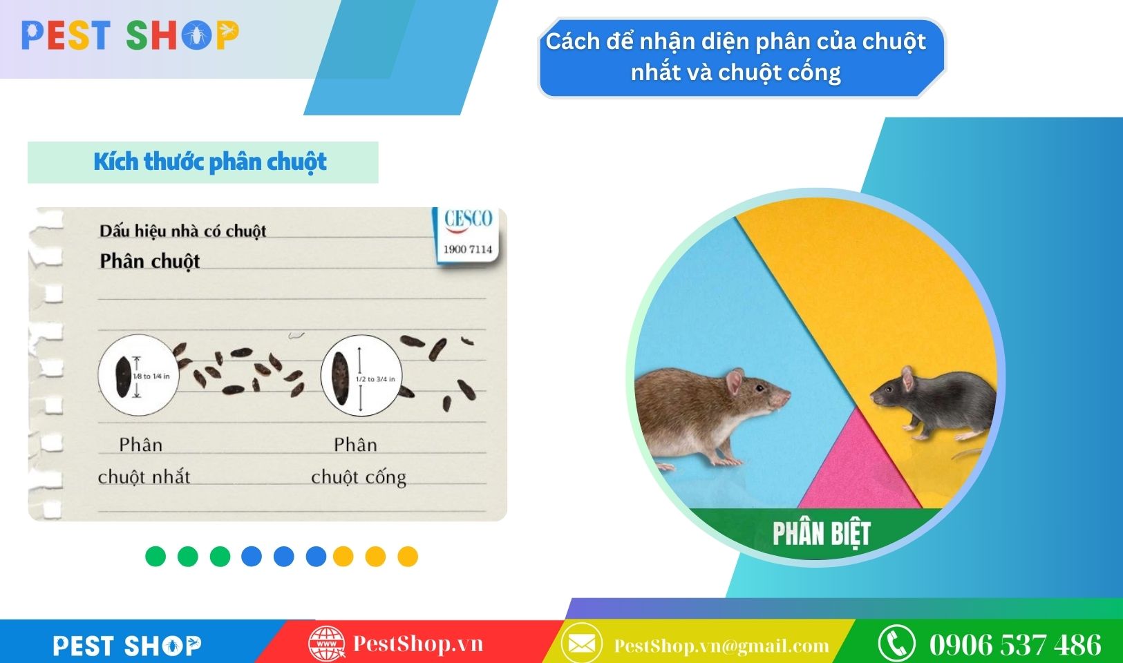 Nhận diện loại chuột: Dựa vào kích thước, hình dáng, và màu sắc của phân, cố gắng xác định loại chuột (như chuột nhắt hoặc chuột cống) để áp dụng phương pháp kiểm soát phù hợp.