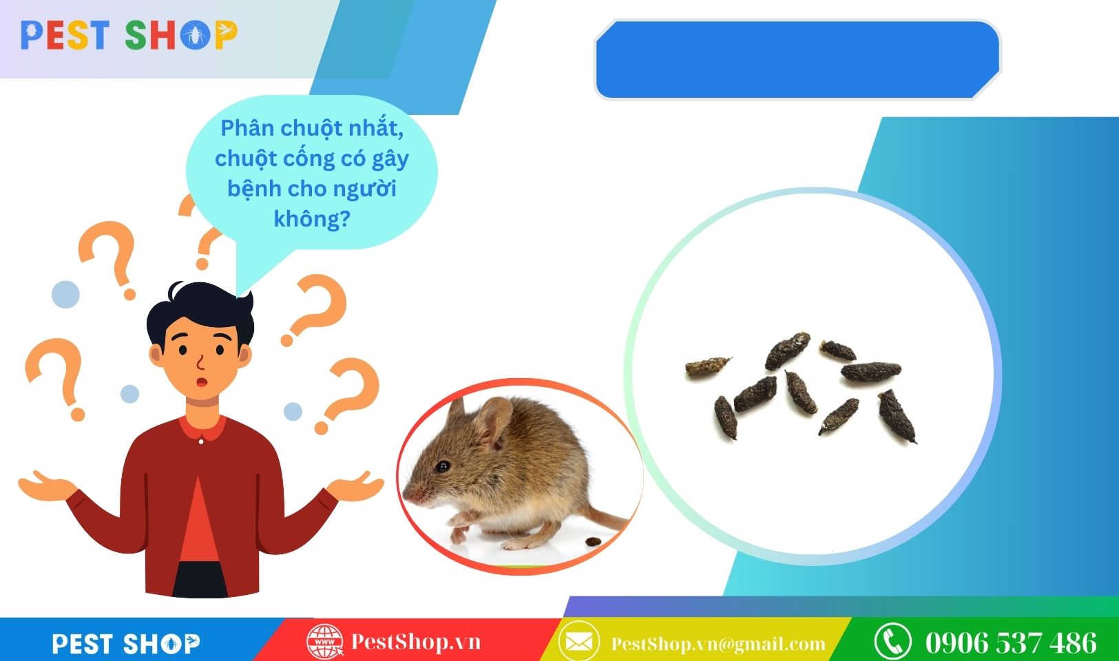 Có, phân chuột có thể gây bệnh. Phân chuột có thể mang một số mầm bệnh như hội chứng phổi do virus Hanta, sốt Lassa, sốt xuất huyết kèm suy thận do virus Hanta. Bệnh viêm não do virus Lymphocytic Chori-meningitis, bệnh nhiễm virus Arenaviruses Nam Mỹ và một số bệnh khác. Bạn có thể bị nhiễm một trong các bệnh này chỉ vì hít phải bụi từ phân chuột hoặc vô tình chạm vào phân chuột.