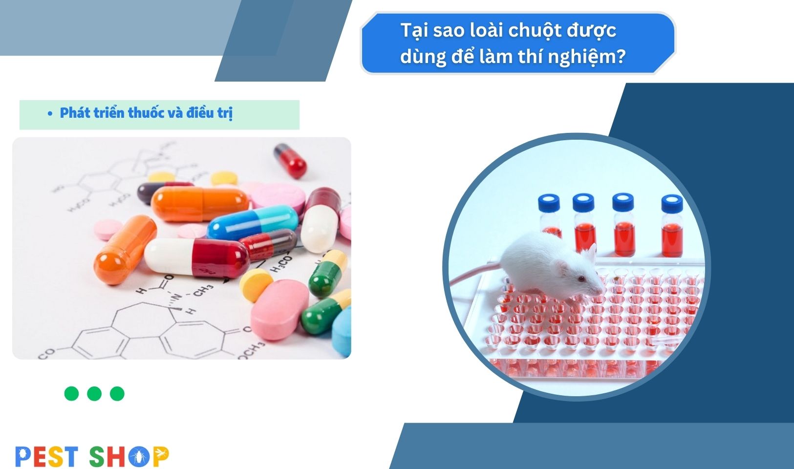 Chuột là mô hình lý tưởng để thử nghiệm các loại thuốc mới trước khi đưa vào thử nghiệm lâm sàng trên con người. Chúng giúp đánh giá hiệu quả và an toàn của các thuốc và liệu pháp điều trị. Từ các thuốc chống ung thư đến thuốc điều trị các bệnh truyền nhiễm hoặc bệnh lý mãn tính.