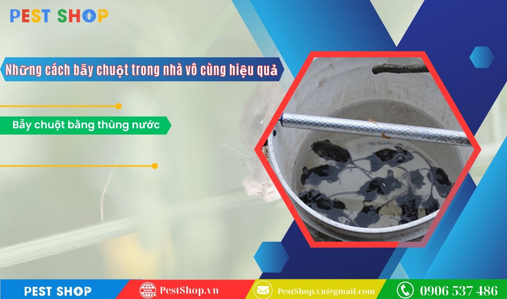Bên cạnh chai nước bạn cũng có thể tạo bẫy chuột bằng thùng nước. Các bước thực hiện đơn giản như sau: