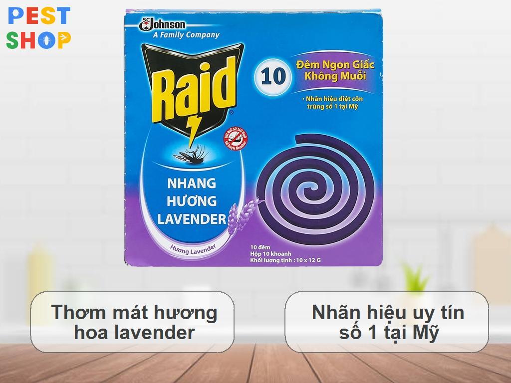 - Nhang Raid hương lavender 120g chính hãng 100%, đầy đủ thông tin về nguồn gốc xuất xứ.