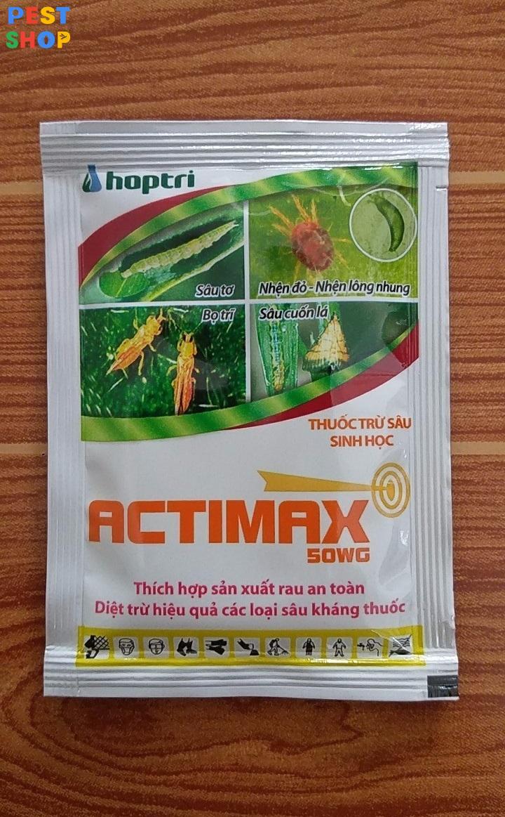 Thuốc trừ sâu sinh học thế hệ mới Actimax 50WG Đây là một loại hoạt chất làm tê liệt và dẫn đến chết khi sâu hại hút chích hay ăn phải thuốc, với hiệu quả chỉ từ 2-4 ngày. Là thuốc trừ sâu thế hệ mới với hoạt chất Emamectin benzoate trích ly trong quá trình lên men nấm Streptomyces avermitilis.
