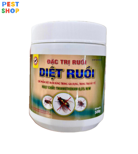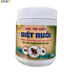 - Pha 10g chế phẩm với 1 lít nước để phun tới khu vực có ruồi hay tạy