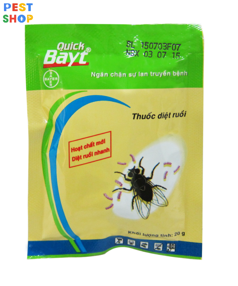 - Thuốc diệt ruồi Quick Bayt được cho là hiệu quả nhất trong các loại thuốc diệt ruồi trên thị trường hiện nay. Quick Bayt là chế phẩm diệt ruồi sinh học dạng bả, sử dụng để kiểm soát ruồi trong nhà, căn-tin, bếp, trang trại chăn nuôi, cửa hàng thực phẩm, chợ…