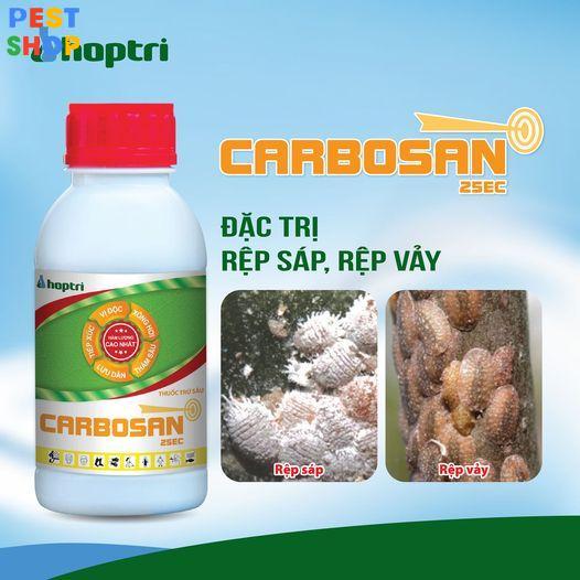 - Carbosan 25EC diệt trừ triệt để nhóm côn trùng chích hút ẩn sâu bên trong cây trồng, dễ dàng phối trộn với các loại thuốc bảo vệ thực vật khác để tăng hiệu quả phòng trừ