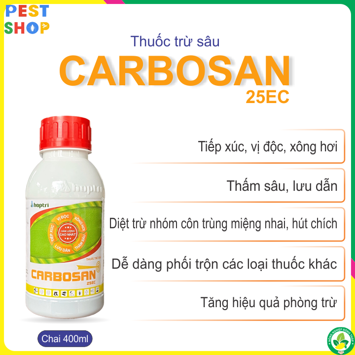 Thuốc trừ sâu Carbosan 25EC diệt trừ hữu hiệu các nhóm sâu chích hút, cắn phá hoa, trái non,… Thuốc trừ sâu chính hãng Hợp Trí.
