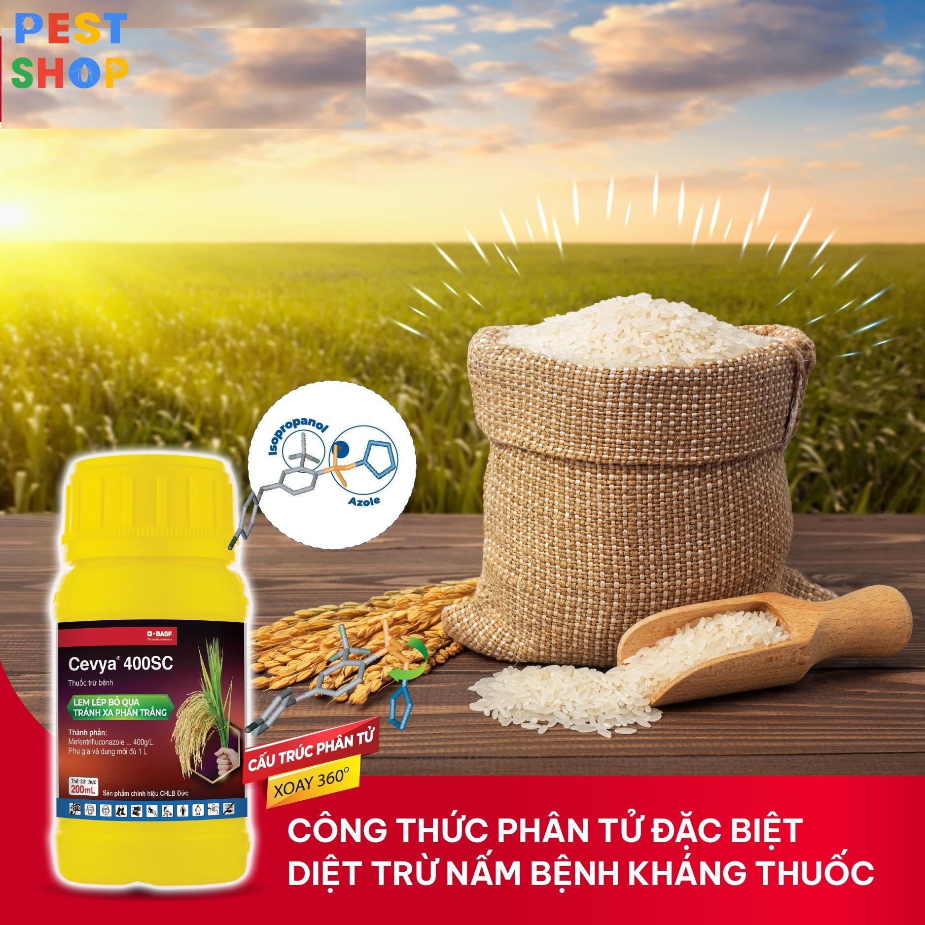 Cevya 400 SC là thuốc trừ bệnh phổ rộng trên nhiều loại cây trồng. Ngoài ra còn giúp dưỡng cây, dưỡng lá xanh bền, tăng cường quá trình vận chuyển dinh dưỡng vào hạt (củ, trái), giúp hạt sáng, chắc, củ to, tăng năng suất và chất lượng nông sản.. Với hoạt chất mới giúp quản lý tính kháng các chủng bệnh mới “Hiệu quả nhanh – Hiệu lực lâu dài”.