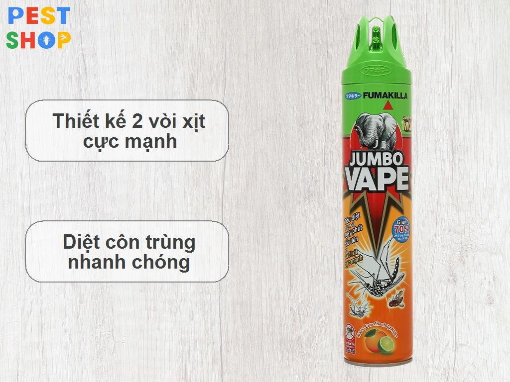 Chai xịt muỗi Jumbo Vape F10 hương cam chanh dùng để diệt muỗi ruồi kiến gián trong gia dụng và y tế.