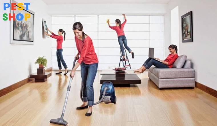- Lau sạch bụi trên bề mặt vật dụng: Bạn cần dùng khăn lau sạch các bụi bẩn còn bám trên bề mặt đồ dùng. sàn nhà trước khi tiến hành phun dung dịch diệt trùng.