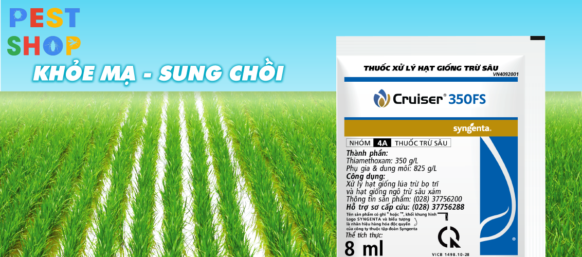 Cruiser 350FS Sản phẩm chăm sóc hạt giống. kiểm soát bọ trĩ đầu vụ ưu việt, đồng thời giúp cây mạ khỏe, nảy chồi sớm, chống chịu với các điều kiện bất thuận như hạn, phèn, ngập úng, ngộ độc hữu cơ