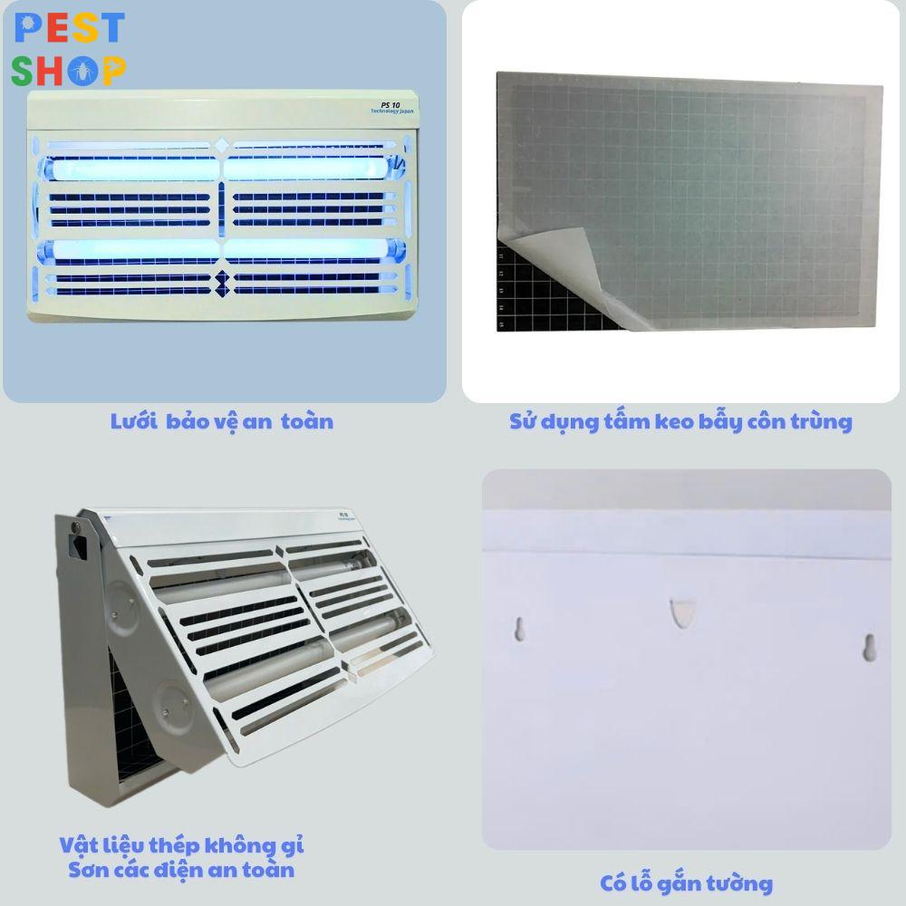 Đèn diệt côn trùng PS 10 đến từ Nhật Bản là 1 giải pháp tối ưu để loại bỏ các loài côn trùng bay cho những doanh nghiệp sản xuất, đặc biệt là trong ngành sản xuất và chế biến Thực Phẩm. Nhà hàng, Khách sạn, Siêu thị, Thủy Hải Sản, Các ngành Điện tử, May mặc. Các cửa hàng thực phẩm,… Đèn PS 10 diệt côn trùng bay theo cơ thu hút nhờ ánh sáng UV và tấm keo bẫy côn trùng. PS 10 đảm bảo vấn đề an toàn và vệ sinh so với các loại đèn lưới điện nên được nhiều chuyên gia khuyên dùng.