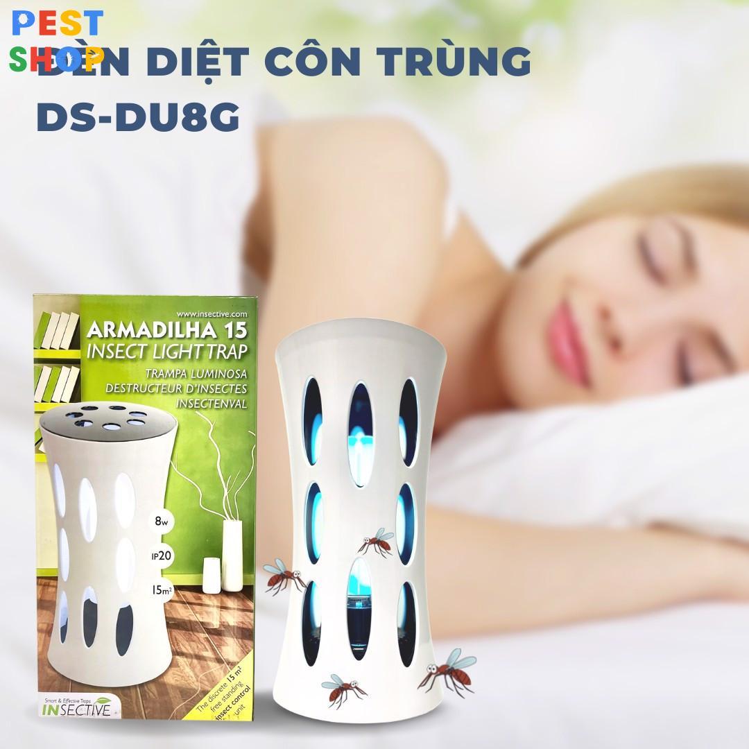 - Đèn bắt muỗi Pest shop DS-DU8G được thiết kế với bóng đèn đặc biệt thu hút côn trùng bay vào đèn, khi côn trùng va vào tấm keo dính sẽ bi dính chặt vào tấm keo và bị diệt sau đó.