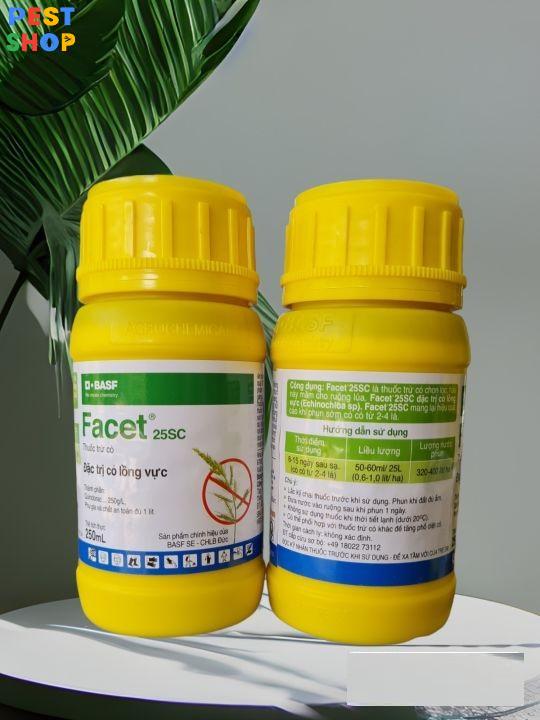 Facet 25SC thuốc trừ cỏ chọn lọc, hậu nảy mầm chuyên dùng cho lúa. Cỏ mần trầu, cỏ chỉ, cỏ lá tre, cỏ đuôi phụng, cỏ lông, cỏ cúc trắng, rau muống, rau dền dại, rau sam, rau mương, rau mác…
