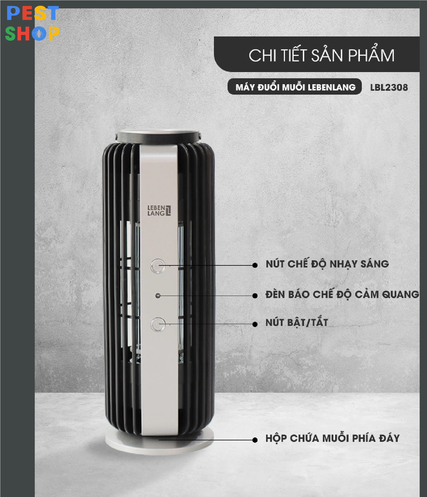 - Đèn bắt muỗi UV LEBENLANG LBL2308 sử dụng bóng led và tiêu diệt muỗi bằng quạt, sử dụng bón LED sẽ giúp bóng bền hơn,