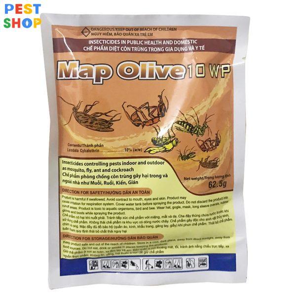 - Map Olive 10WP Diệt côn trùng gây hại trong và ngoài nhà như : Diệt muỗi, diệt Rận , diệt Rệp, diệt Ve , diệt Bọ Chét , diệt Kiến ,Gián….