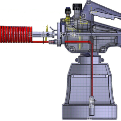 - Sau khi khởi động thì tháo van bình đựng hóa chất và bất đầu phun khói.