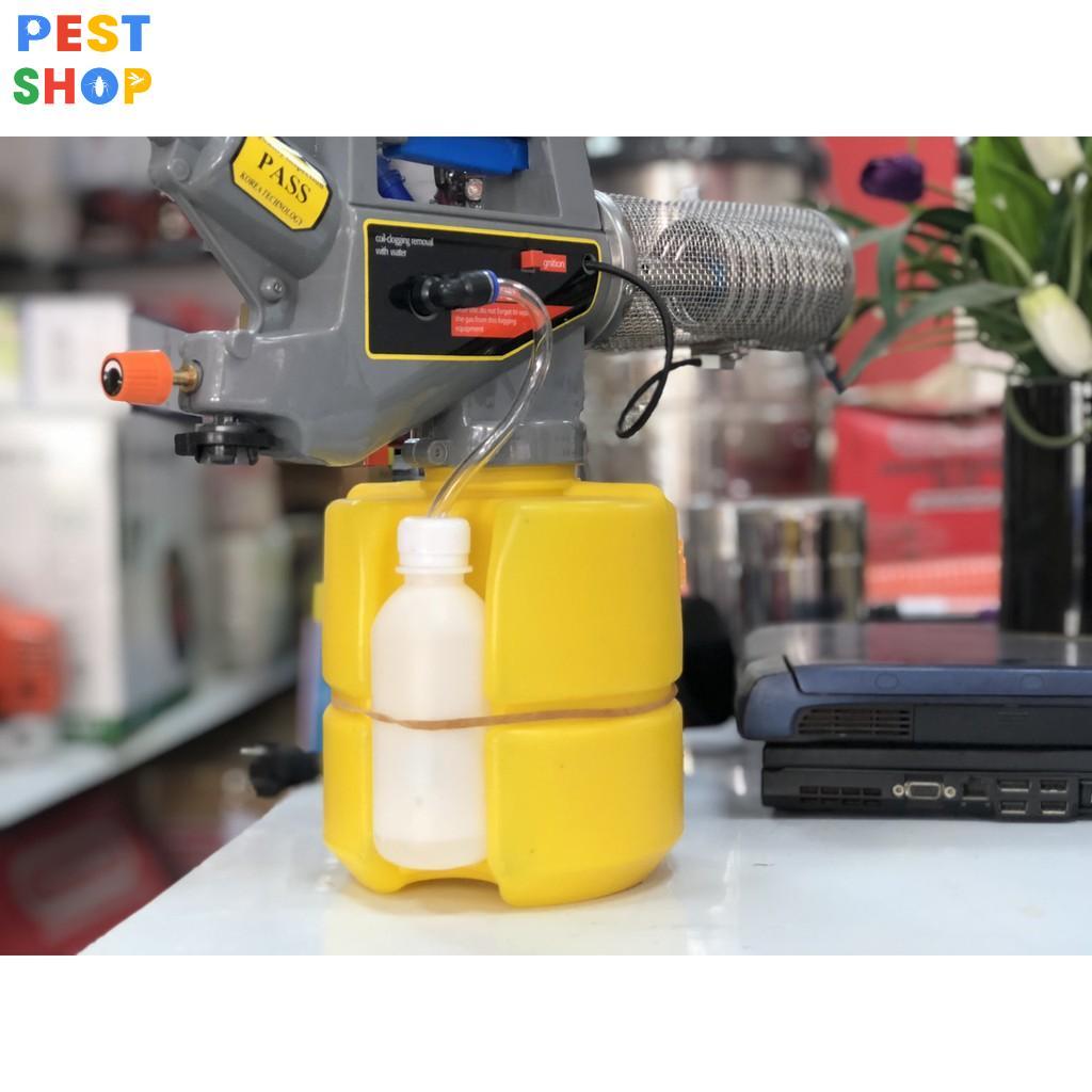 - Sau khi khởi động thì tháo van bình đựng hóa chất và bất đầu phun khói.