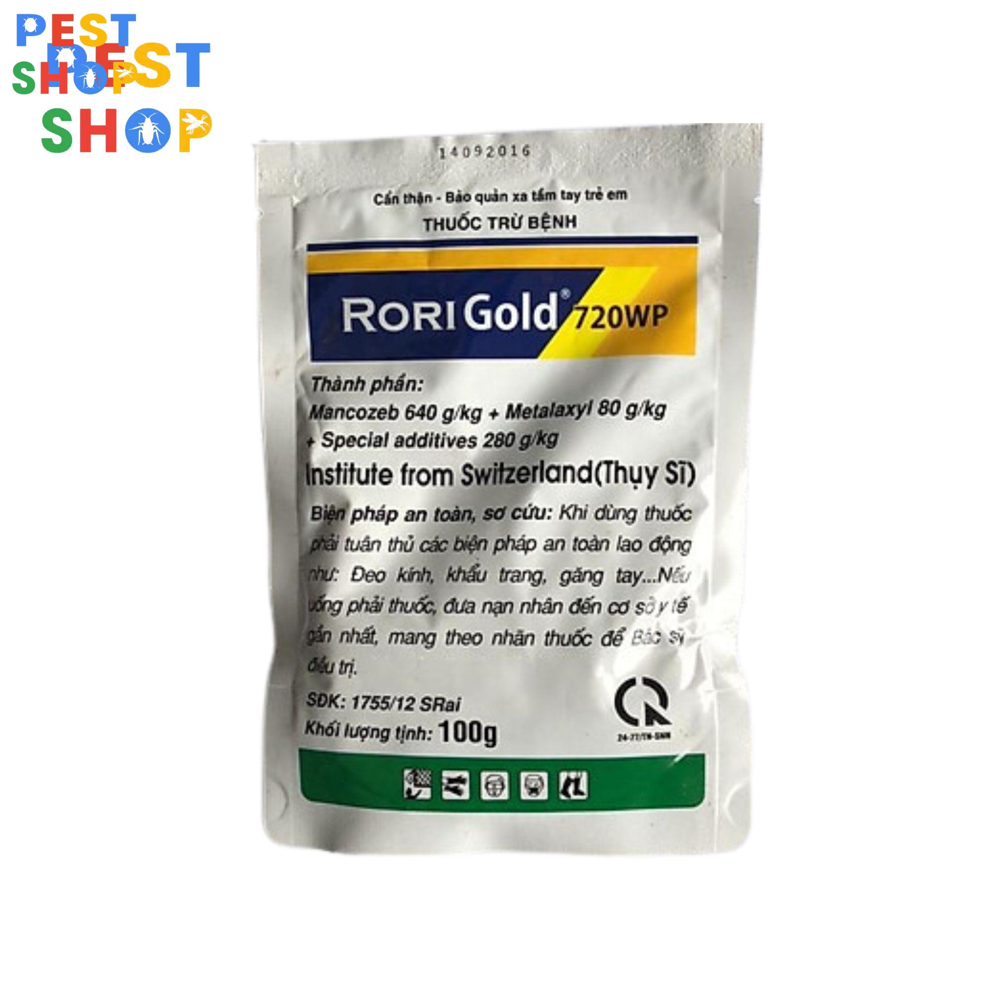 Thuốc đặc trị nấm bệnh Rorigold 720WP chuyên dùng trừ các loại bệnh hại cây trồng như bệnh sương mai (mốc sương), đốm vòng hại rau màu, cà chua, dưa.