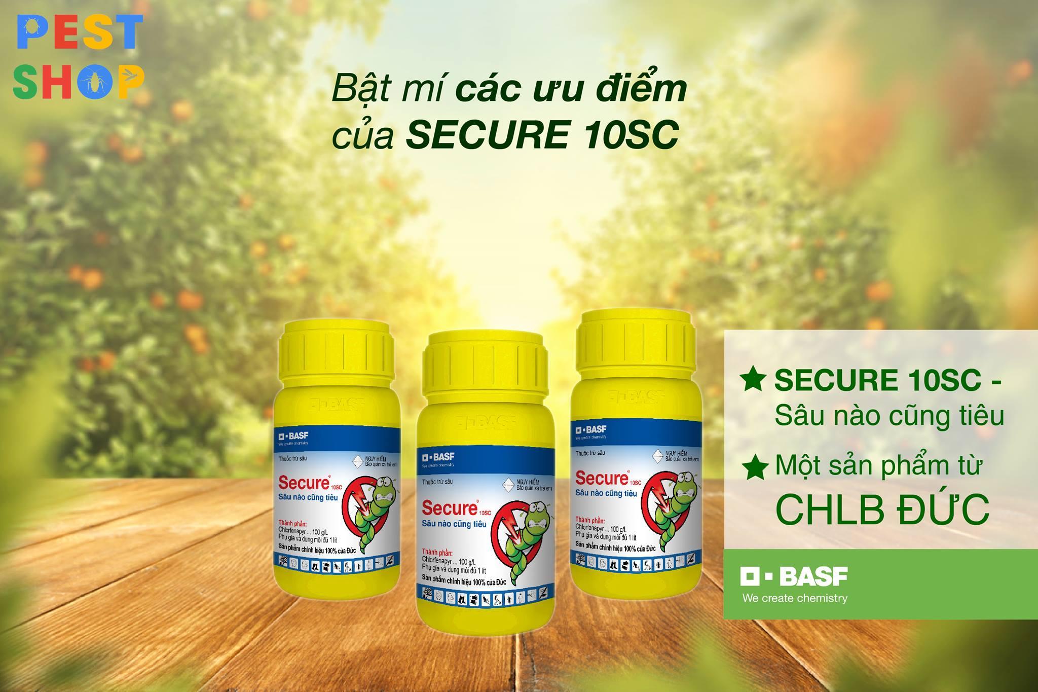 - Secur 10SC diệt sâu với 3 kiểu tác động tiếp xúc, vị độc và thấm sâu rất tốt.