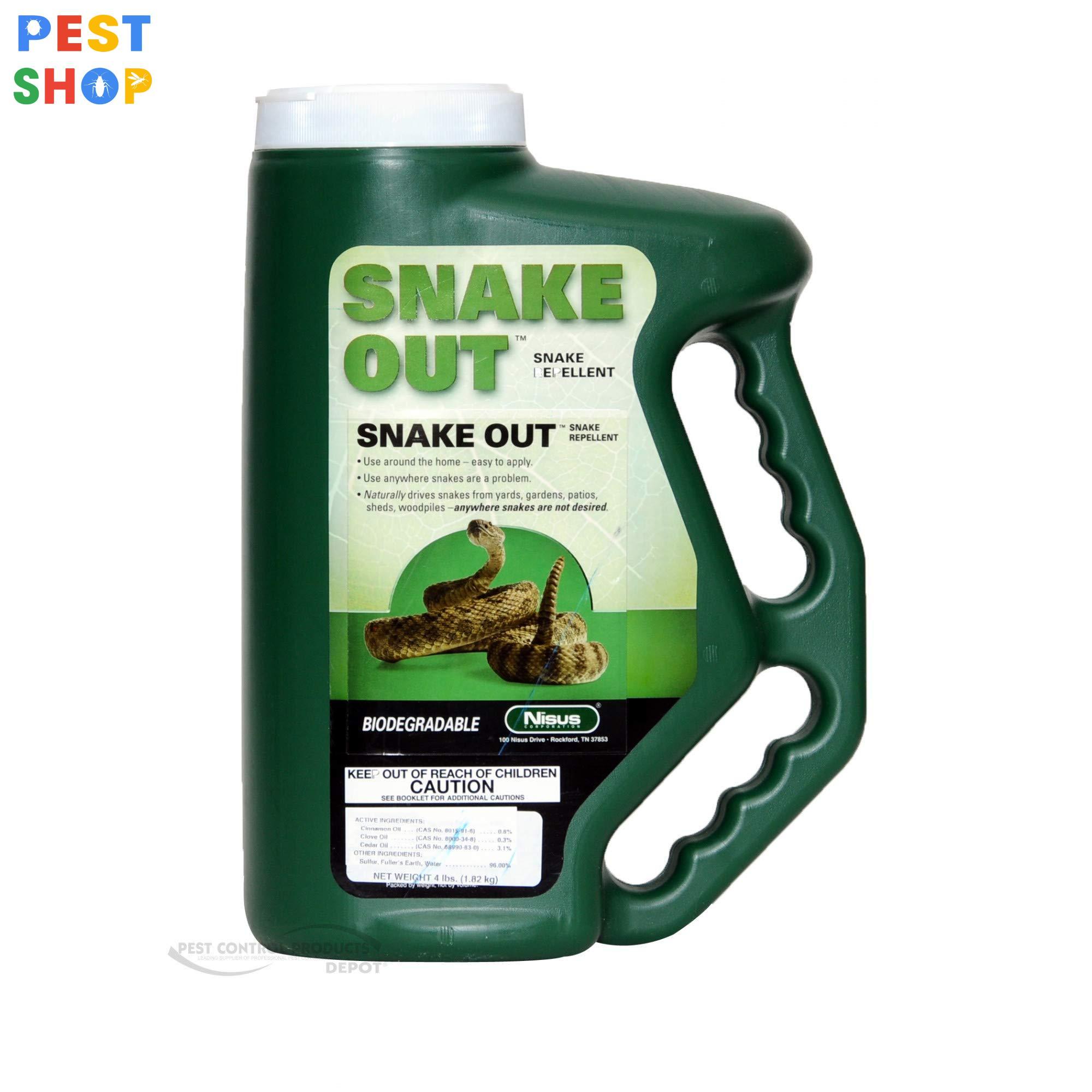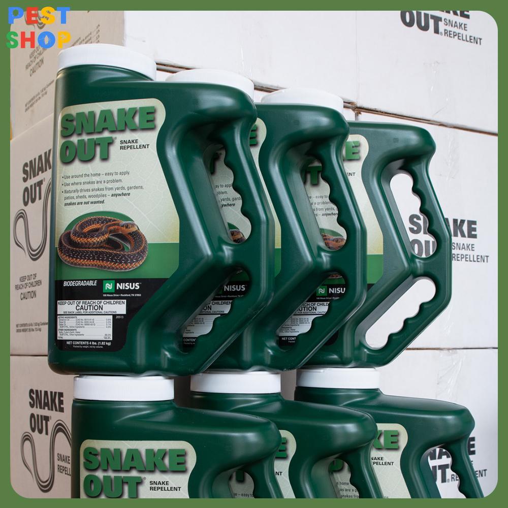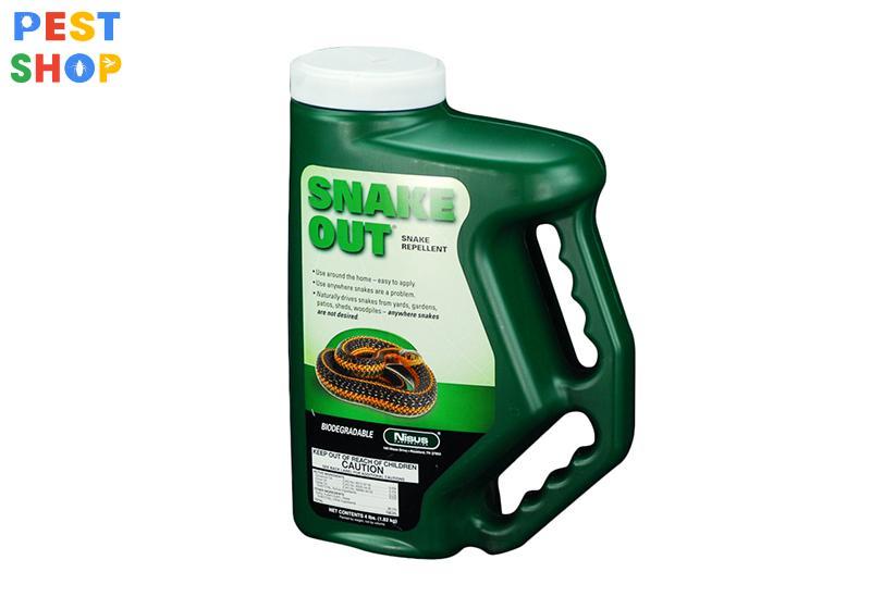 - Thuốc đuổi rắn Snake out tạo ra một mùi hương làm cho rắn khó chịu và muốn tránh xa nơi đã rắc (hoặc phun) thuốc.