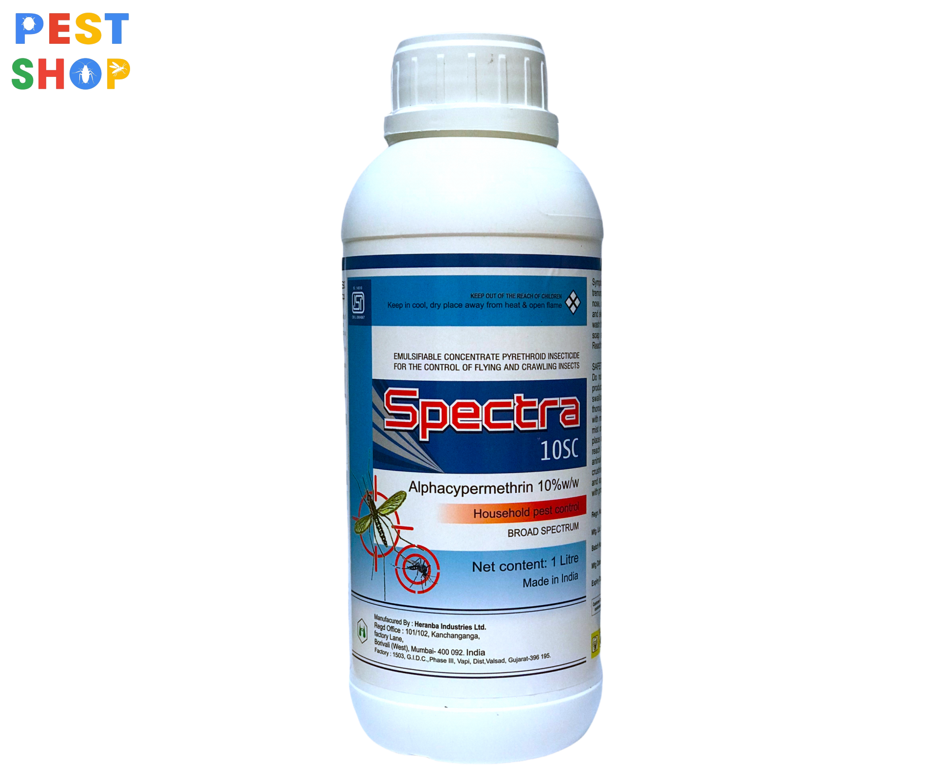 - Spectra 10SC là chế phẩm diệt côn trùng dạng huyền phù, có công dụng phòng trừ các loài gây hại trong nhà như muỗi, gián, kiến, ruồi, bọ chét. Hóa chất được nhập khẩu nguyên chai từ hãng Heranba của Ấn Độ, một thương hiệu uy tín nhiều năm qua tại thị trường Đông Nam Á.