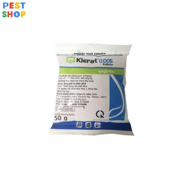 Klerat 0.005% là thuá»c diá»t chuá»t ÄÆ¡n liá»u, chá»ng Äông máu thế há» má»i. Thuá»c có dạng viên, dá» sá» dụng. Thuá»c có tác dụng vá»i cả những loại chuá»t kháng thuá»c. Thuá»c có mùi vá» hấp dẫn dá» dà ng dẫn dụ loà i chuá»t nên không sợ chuá»t không Än thuá»c.  Má»i bạn cùng pest shop tìm hiá»u thêm vá» thuá»c diá»t chuá»t Klerat 0.005» , ná»i khiếp sợ cá»§a loà i chuá»t.