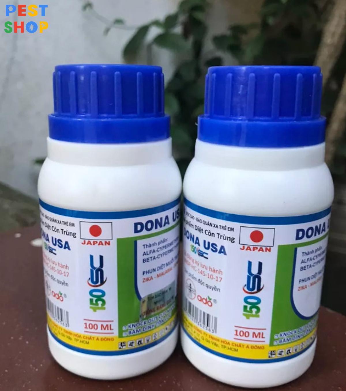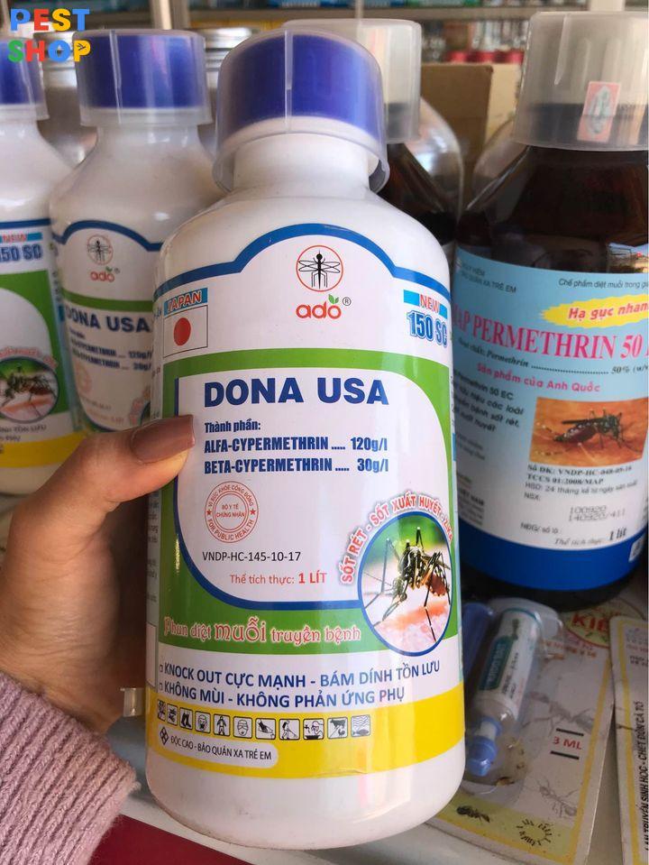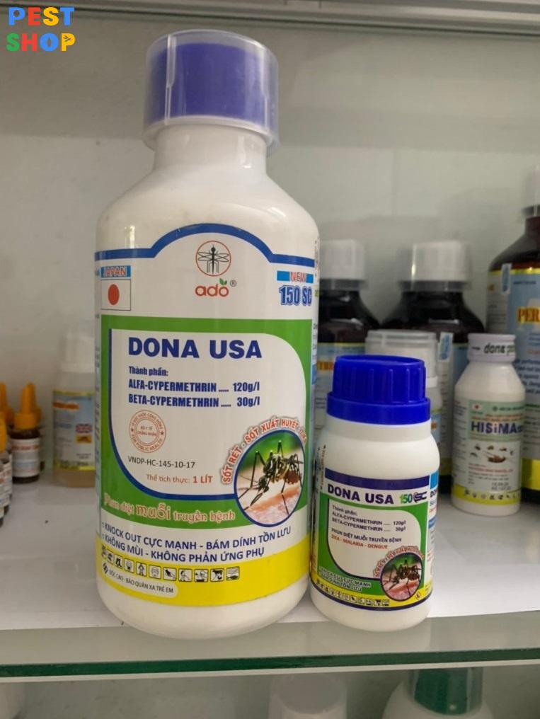 - Dona USA 150SC là chế phẩm thuốc diệt muỗi sinh học. Chế phẩm này có công dụng loại bỏ các loài côn trùng gây hại trong gia dụng và y tế. Thuốc diệt muỗi Dona USA 150SC không chỉ diệt muỗi mà nó còn có thể dùng để diệt gián, kiến, bọ chét và ruồi.