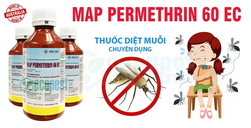 - Map Permethrin 60EC hiện được coi là loại thuốc diệt muỗi hiệu quả nhất và được ưa chuộng tại nhiều quốc gia. Thuốc Diệt Muỗi Map Permethrin 60EC được cho là có tác dụng tiêu diệt các bệnh do muỗi truyền như: Muỗi Anopheles, muỗi vằn, Culex pipiens.