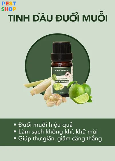 Tinh dầu đuổi muỗi Citronella Tinh Chất Sả Chanh – Đuổi muỗi và côn trùng. Thành phần từ tự nhiên an toàn cho con người. Tạo mùi dễ chịu cho không gian sống của mọi gia đình