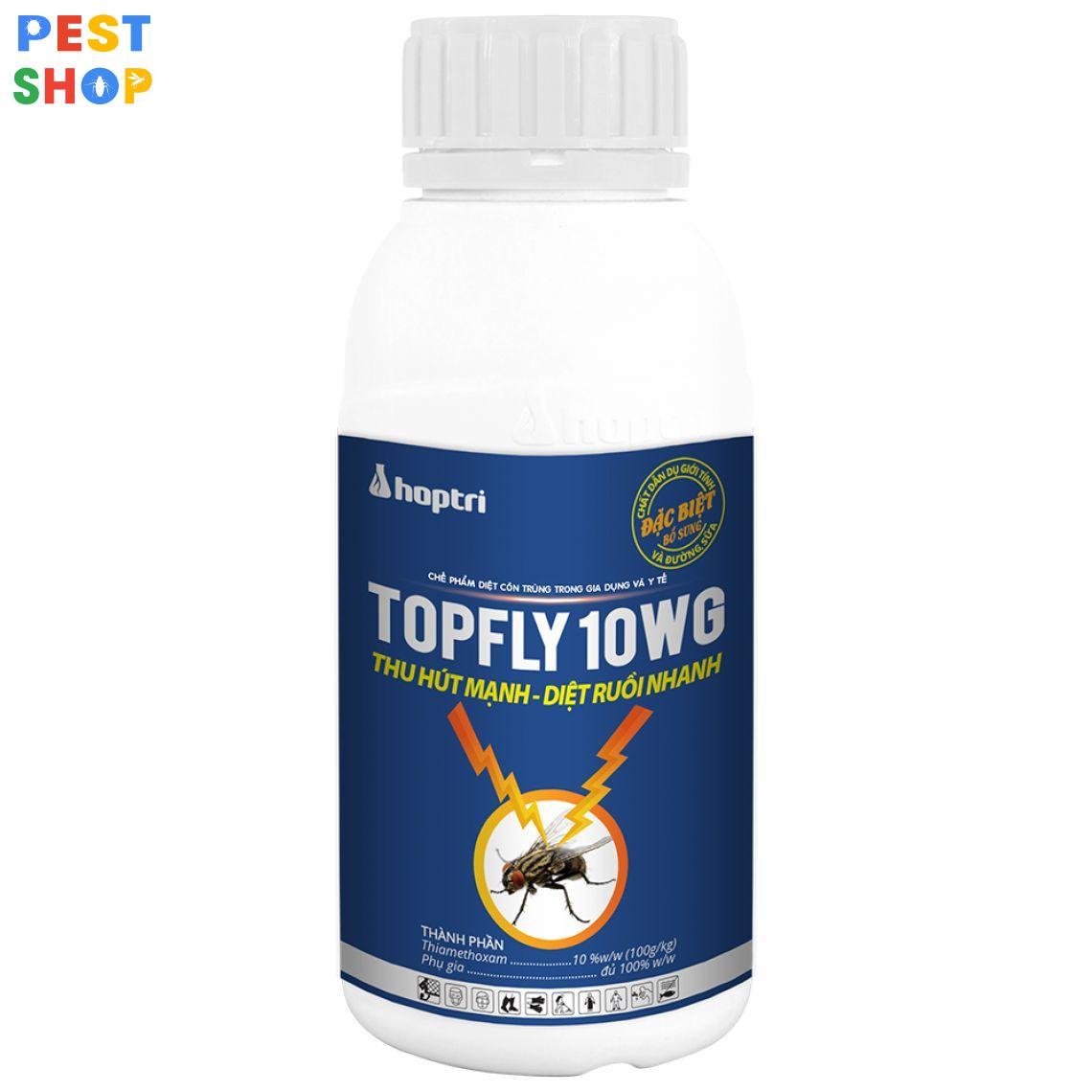 - Thuốc diệt ruồi Topfly 10WG là giải pháp diệt ruồi hữu hiệu nhất hiện nay nhờ công thức dẫn dụ mạnh, diệt ruồi nhanh, thao tác sử dụng đơn giản, hiệu lực tồn lưu lâu, rất tiết kiệm chi phí.