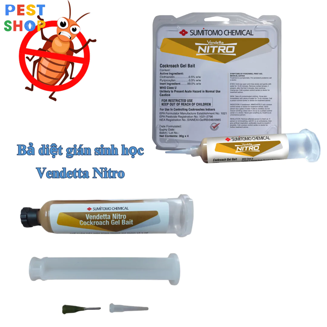 Thuốc diệt gián Vendetta Nitro Cockroach Gel Bait – Thuốc chuyên trị gián Đức, gián Mỹ của Sumitomo ( Nhật Bản ). Cùng Pest Shop khám pha ngay sản phẩm hữu ích này nhé!
