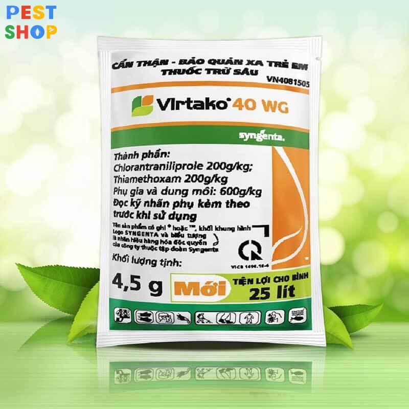 Thuốc trừ sâu đục trái và chích hút Virtako 40WG gói 25gram. Sâu lập tức ngừng ăn khi nhiễm thuốc