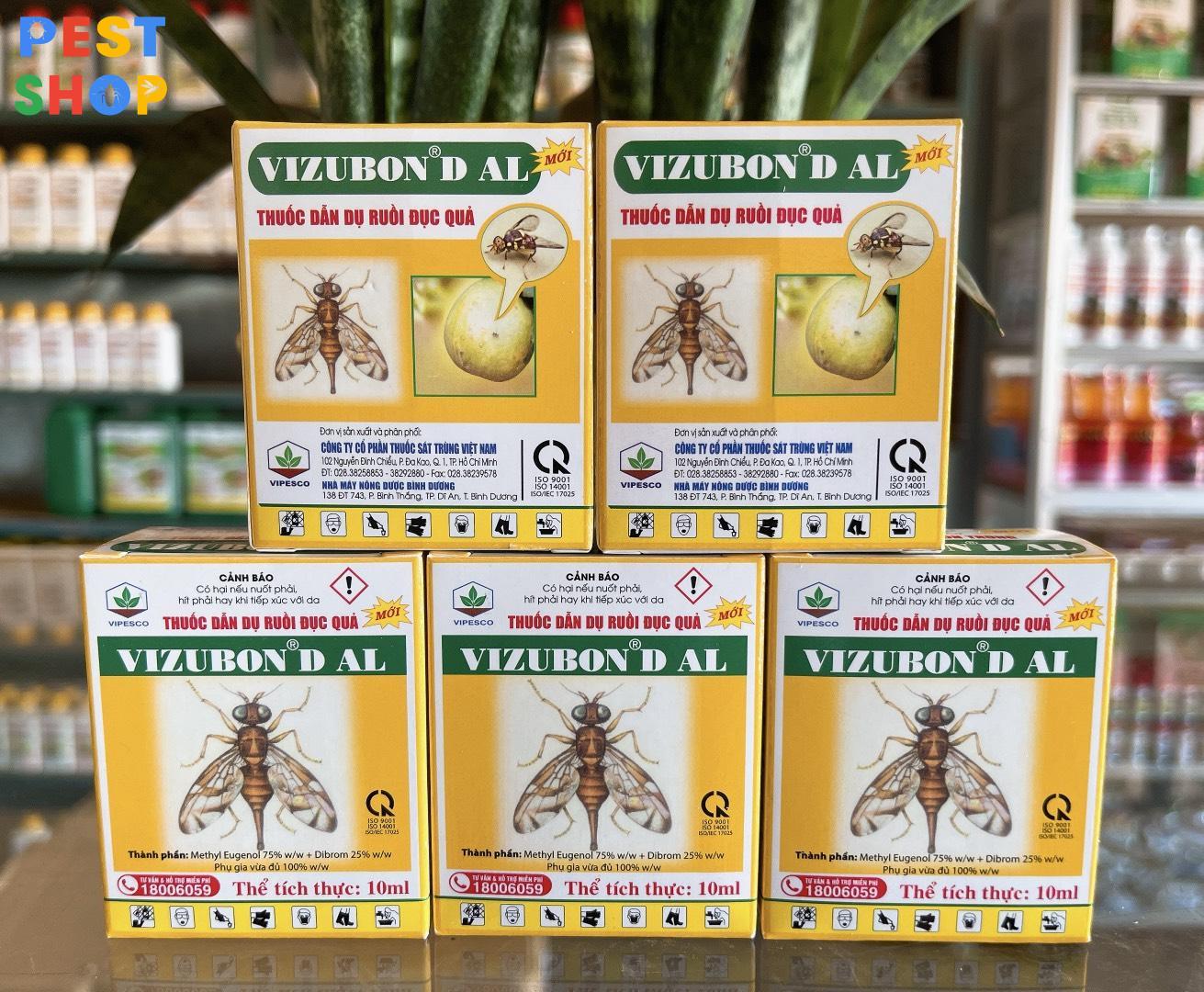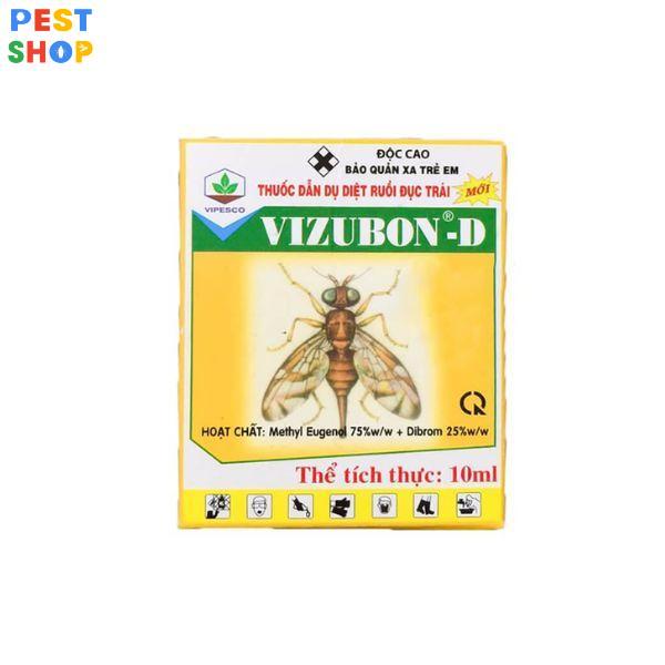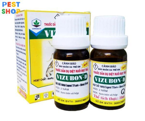 - Trong 1 Hộp.Vizubon-D chứa 2 chai thuốc 10ml gồm 1 chai chứa chất dẫn dụ ruồi và 1 chai chất diệt ruồi.