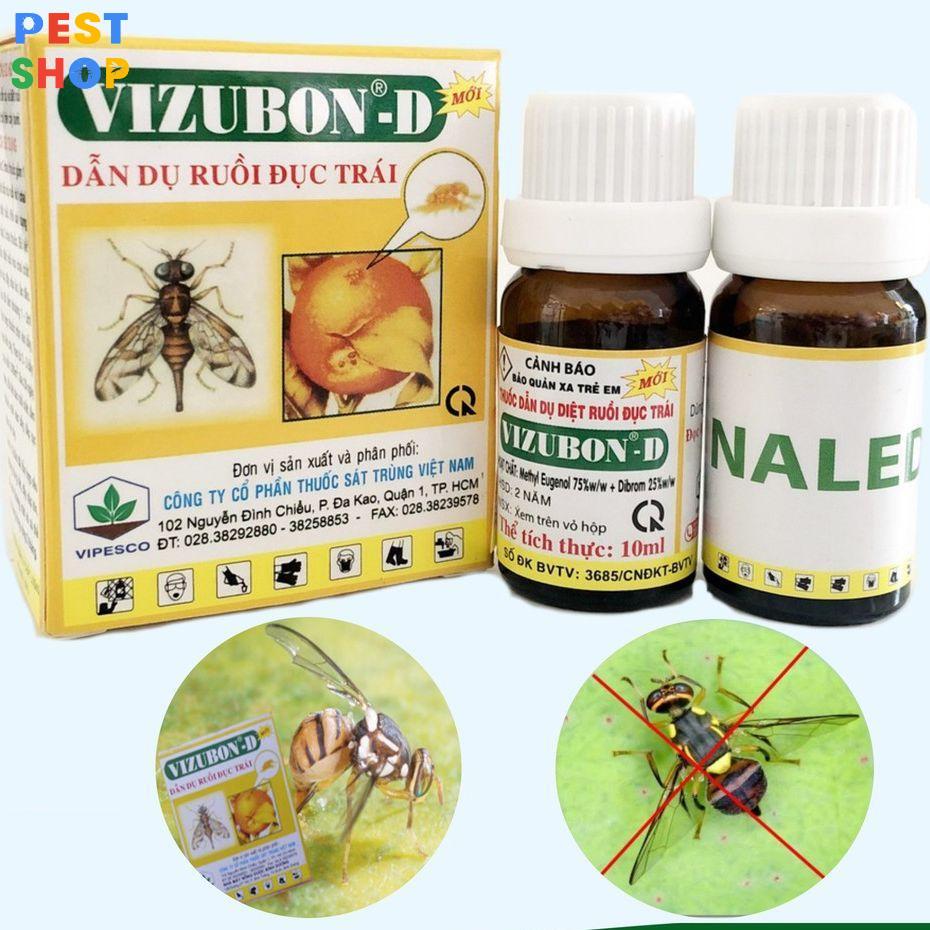 - Thuốc diệt ruồi vàng Vizubon-D: Dùng để dẫn dụ và diệt ruồi vàng đục trái các loại cây: Cam, Quýt, bưởi…