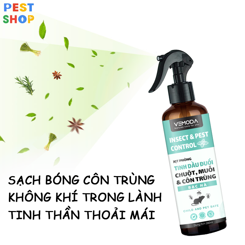 Xịt phòng tinh dầu bạc hà Vemoda giúp khử khuẩn, thơm phòng, đuổi muỗi hiệu quả. cùng Pest Shop đi kiểm chứng công dụng của sản phẩm này nhé!