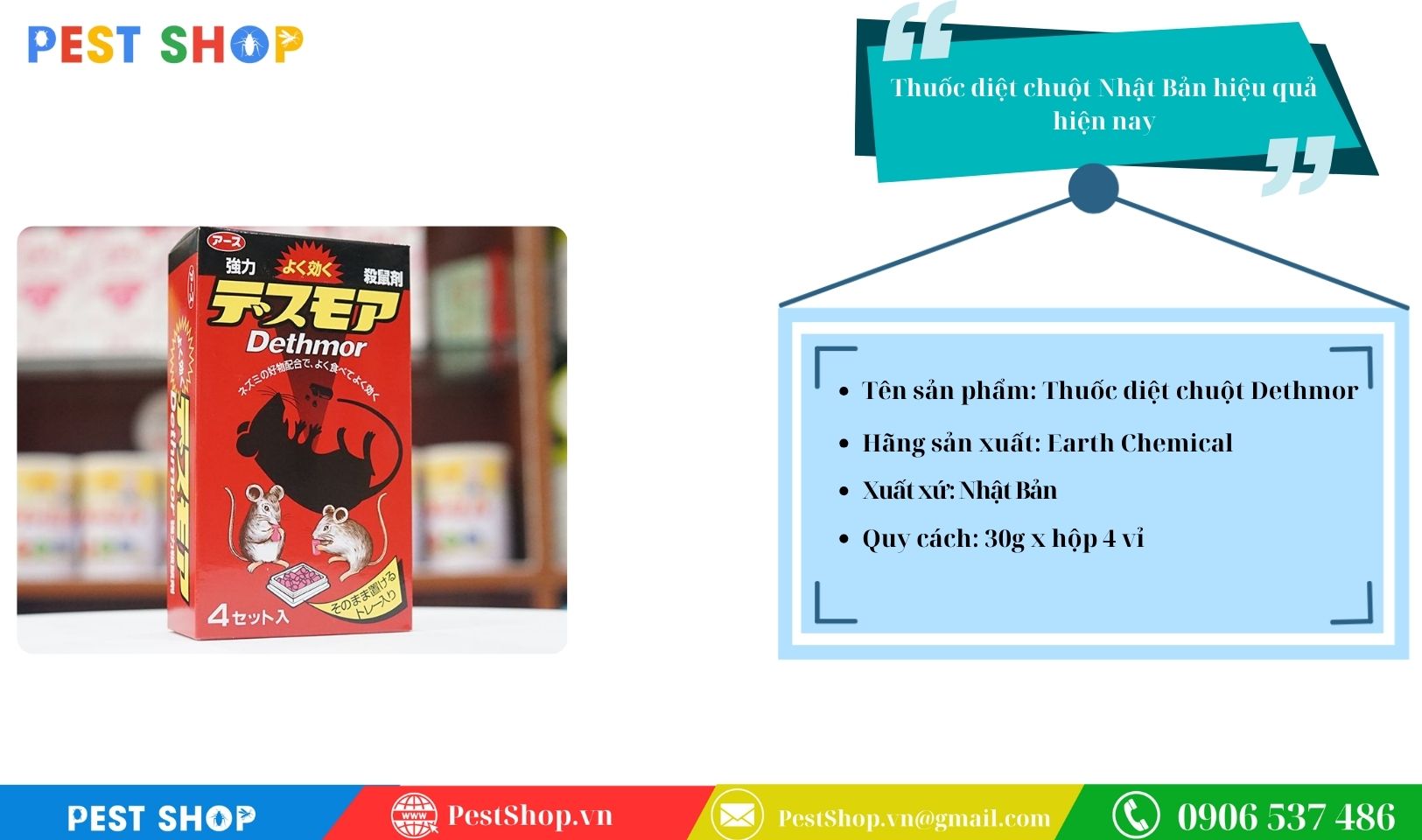 Thuốc diệt chuột Dethmor của Nhật Bản là dòng sản phẩm nội địa Nhật nên chất lượng cực kỳ cao trong khi sử dụng. Sản phẩm bán chạy số 1 trên thị trường Nội địa Nhật Bản.