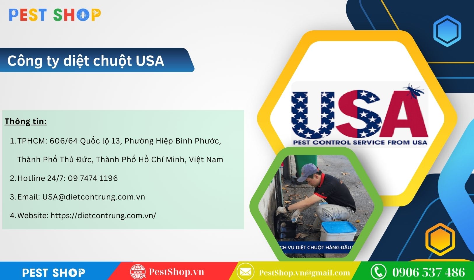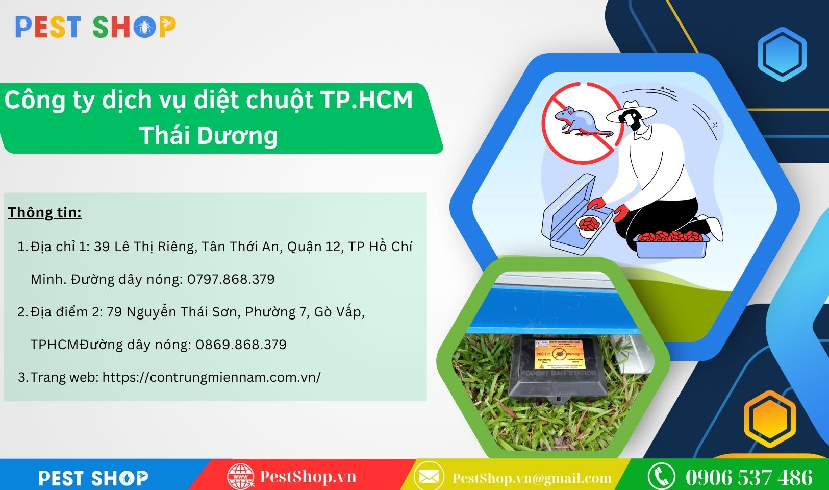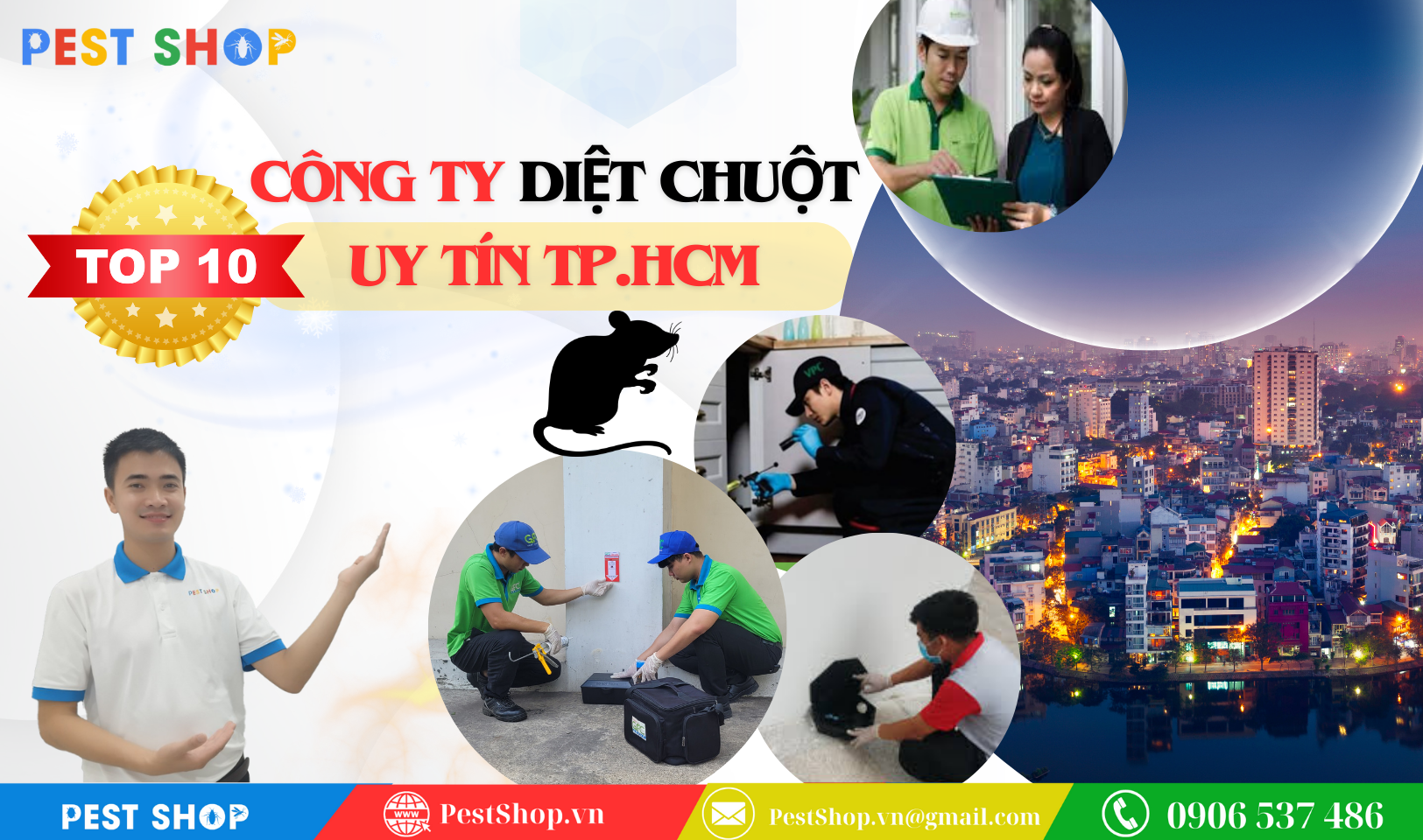 Trong môi trường đô thị sôi động như TP.HCM, việc xử lý vấn đề chuột một cách hiệu quả và chuyên nghiệp là điều cần thiết để bảo vệ không gian sống, kinh doanh và làm việc của bạn. Để giúp bạn tìm kiếm dịch vụ diệt chuột chất lượng. Pest Shop đã tổng hợp danh sách 10 công ty hàng đầu tại thành phố TP. HCM. Những công ty này nổi bật với dịch vụ diệt chuột an toàn, hiệu quả. Và được đánh giá cao về độ tin cậy. Dưới đây là những lựa chọn tốt nhất để bạn có thể yên tâm giải quyết tình trạng chuột một cách triệt để.