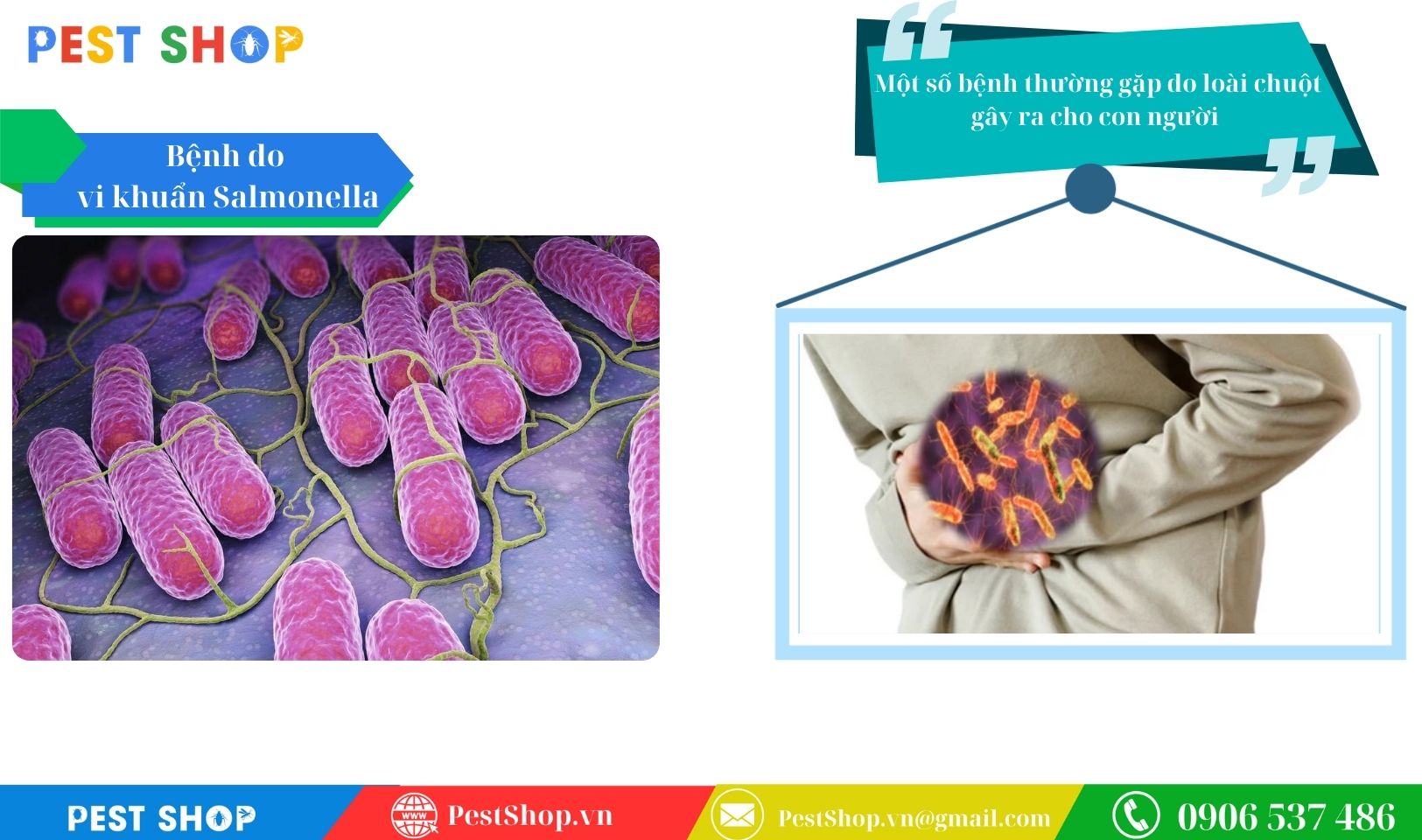 – Chuột là nguồn lây bệnh nhiễm trùng tiêu hóa do vi khuẩn Salmonella, thông qua phân mang chủng Salmonella làm ô nhiễm thức ăn, nước uống của người.